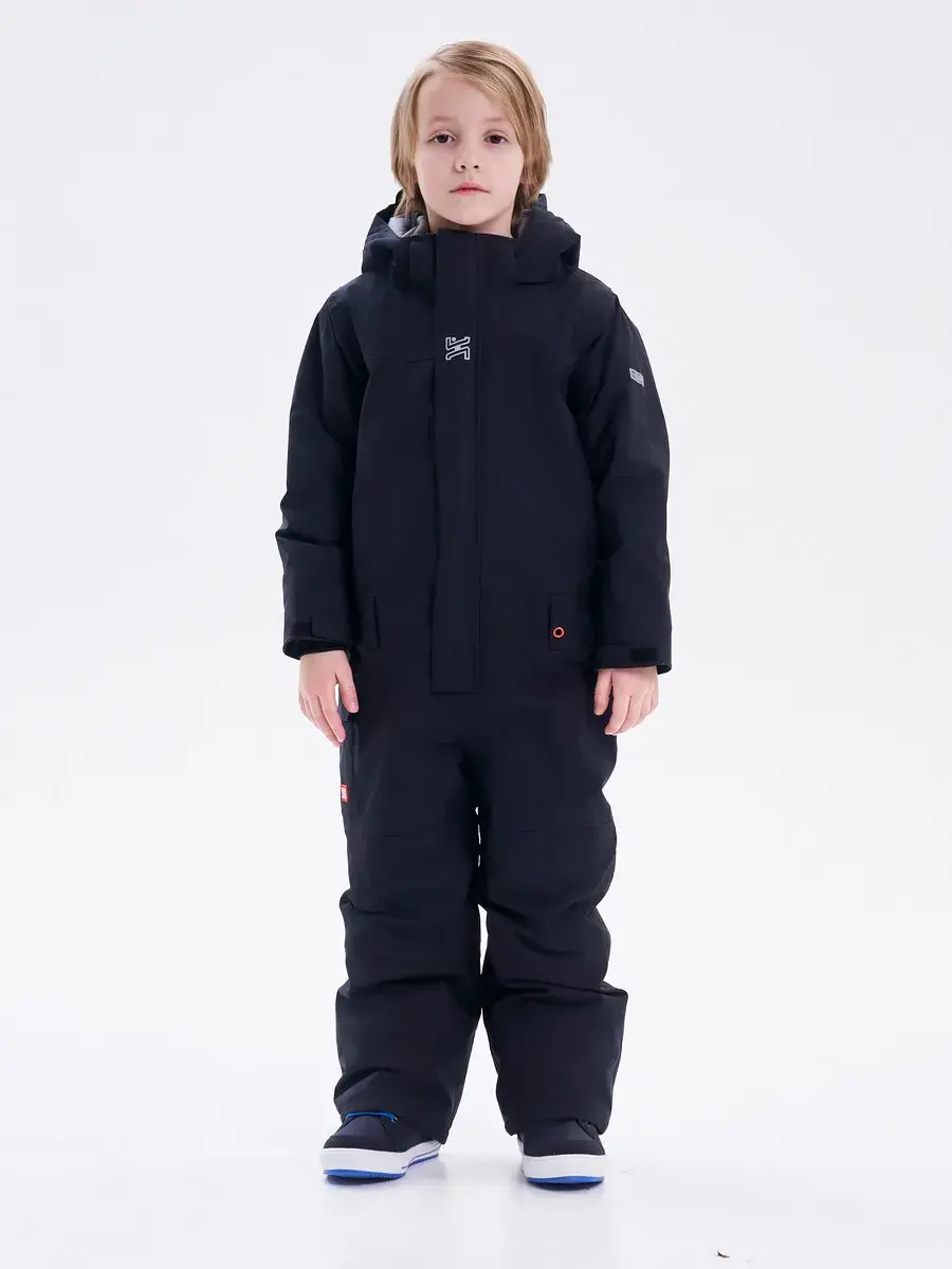 Детский черный комбинезон для мальчиков подойдет для всех видов зимних развлечений, таких как горные лыжи, сноуборд, катание на санках и многое другое.