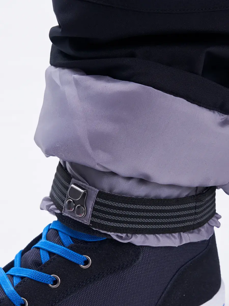 Изготовлен из мембранной ткани, которая обеспечивает высокую водонепроницаемость до 10000 мм водного столба. Паропроницаемость комбинезона составляет 12000 гр/м2 за 24 часа, что предотвращает перегрев и обеспечивает комфорт в течение всего дня. Утеплитель синтетический плотностью 150 гр/м2 и теплоизоляция до -30 градусов мороза подойдут для любых активных занятий на улице. Внутренняя подкладка из флиса обеспечивает дополнительный комфорт и тепло, а светоотражающие элементы делают вашего ребенка видимым в условиях недостаточной освещенности. Комбинезон оснащен японской молнией УКК, карманами на липучках для удобного хранения мелочей и крючком для ботинок. Уплотнительная резинка с антискользящим силиконовым покрытием обеспечивает надежное соединение с ботинками и защищает от снега и влаги.